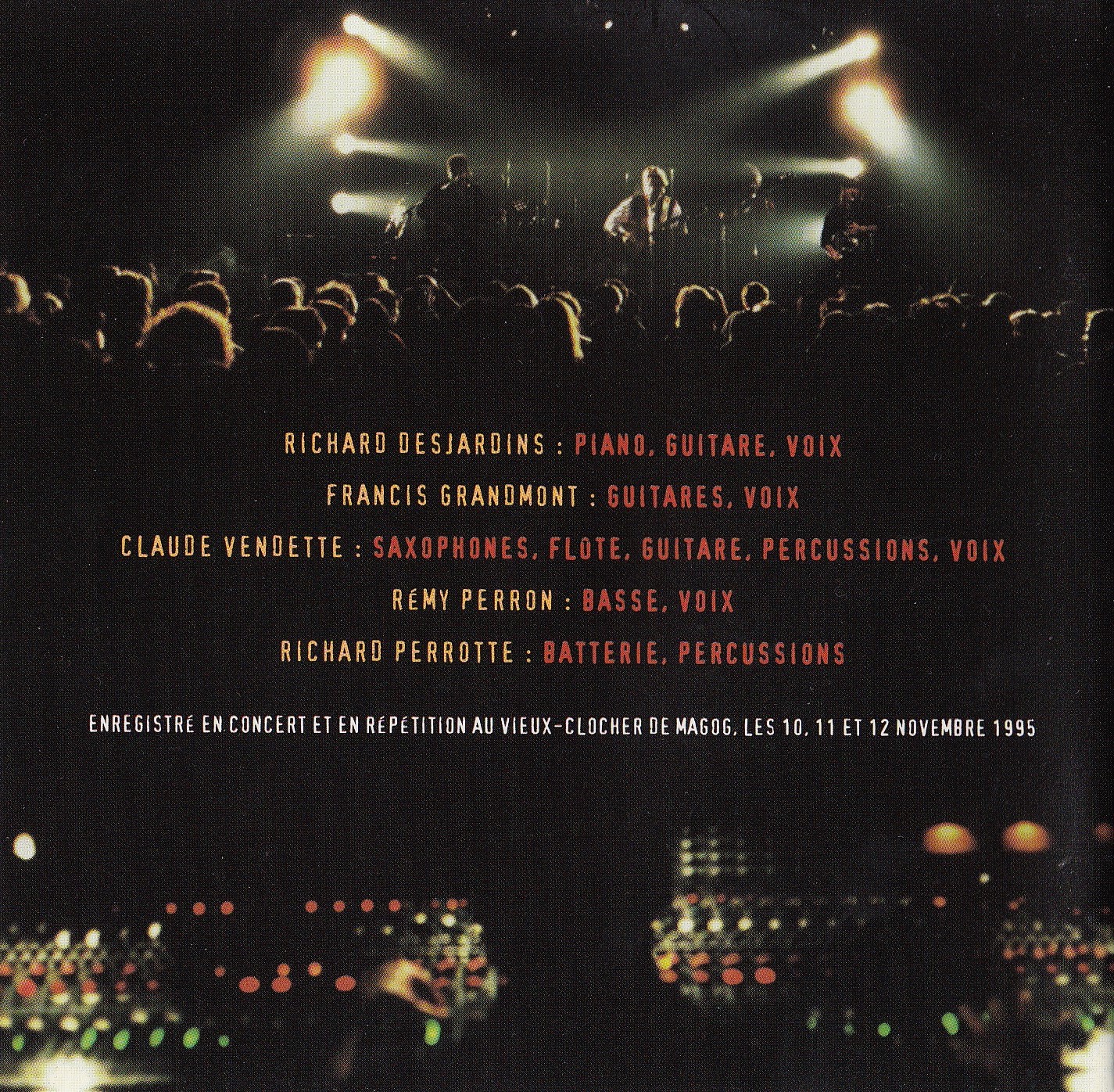 Arrangements: Francis Grandmont, Claude Vendette, Richard Desjardins, Richard Perrotte et Rémy Perron