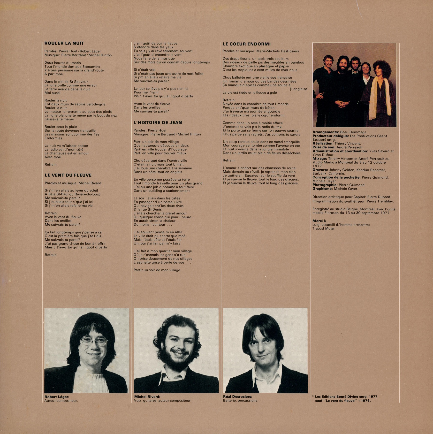 Enregistrement: Studio Beigne, Montréal du 13 au 30 septembre 1977