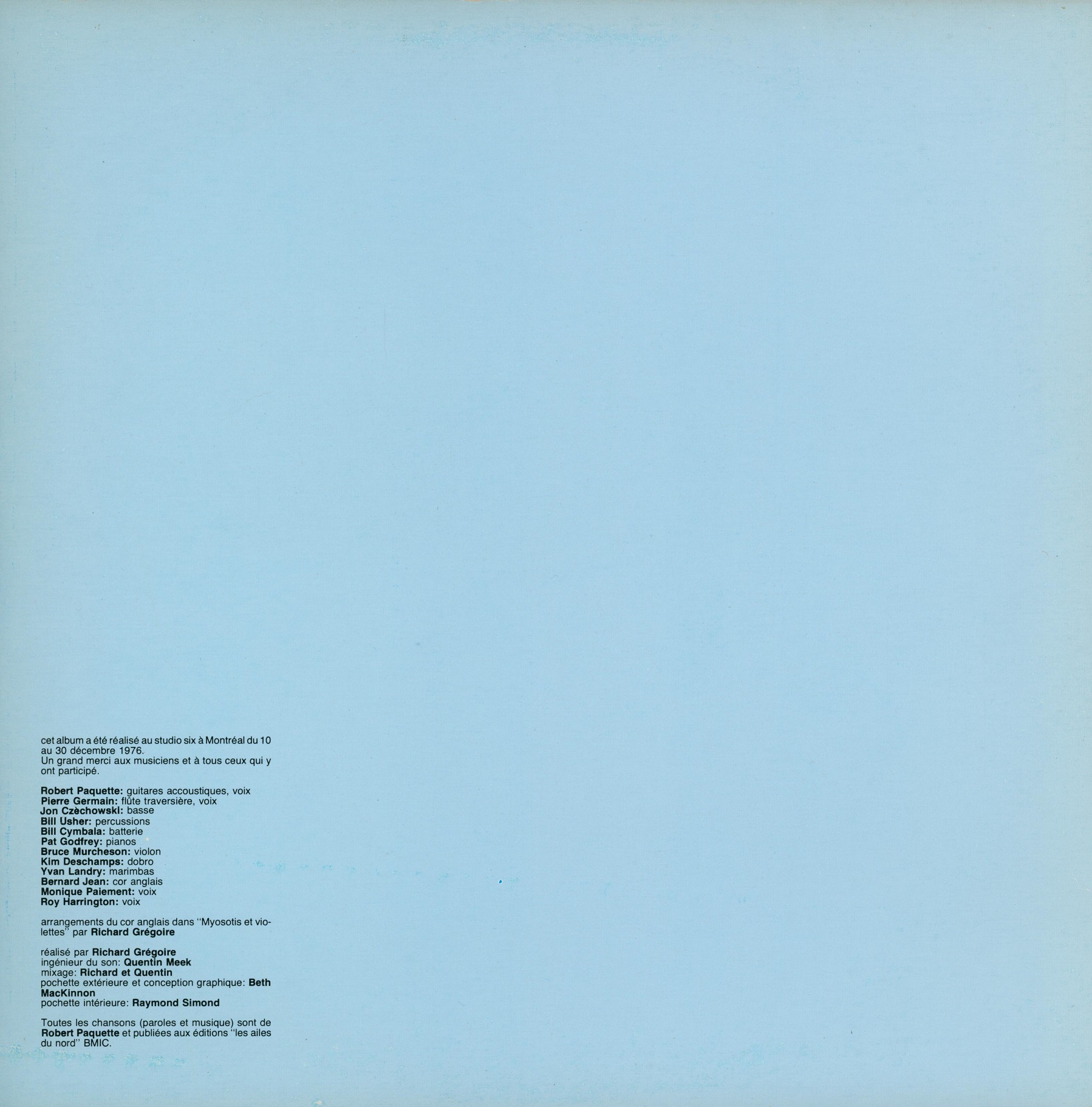 Enregistrement: Studio Six à Montréal du 10 au 30 décembre 1976